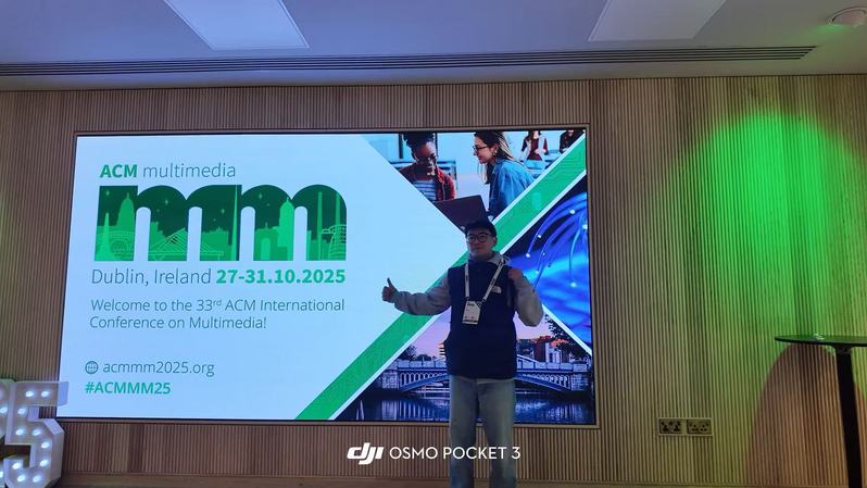 2025年10月27日-11月3日,爱尔兰,都柏林,课题组博士生一年级刘宇星参加CCF A类学术会议MM并做口头报告。